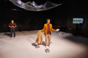 《當水落下》是一部由臺灣、新加坡與中國藝術家共同創作的舞蹈劇場作品。作品以兩位舞者的雙人舞為核心,結合水的空間裝置與紀錄劇場的手法,在共舞與分離之間流轉。地緣政治之間的碰撞如何影響表演者對自我,對彼此 ,對華文化的理解?《 當水落下 》將這個歷程轉化為舞台上的身體實踐,與觀者在不同的時空背景下反覆對話。如同河流跨越疆界、匯聚、轉向、交會又再次分流,他們的身體訴說著三個華人社會在轉型中的連結,差異與矛盾。層層堆疊的敘事結構中,舞作提出的不是結論,而是撐開一個空間 ,讓我們暫留其中,反思民族主義對傳統文化的裹挾,感知文化在變革中重構與發展的可能性。